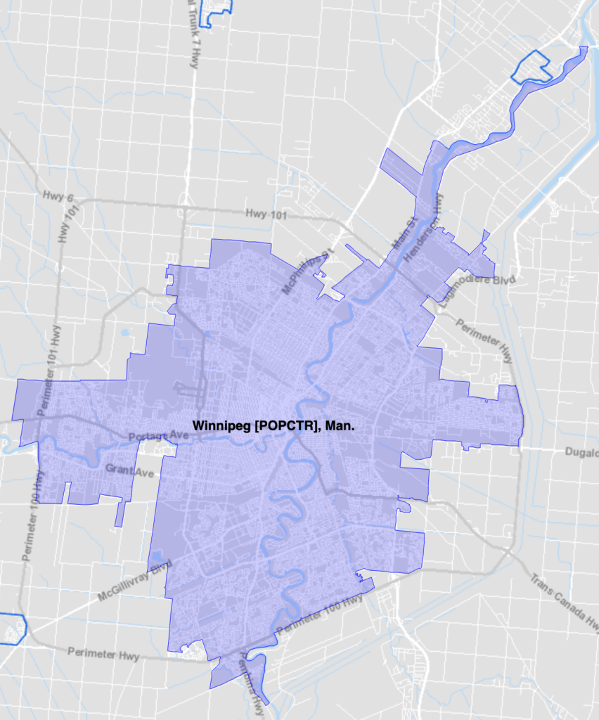 Note that not only does it exclude all the farmland on the outskirts, it also excludes Assiniboine Forest and Park.