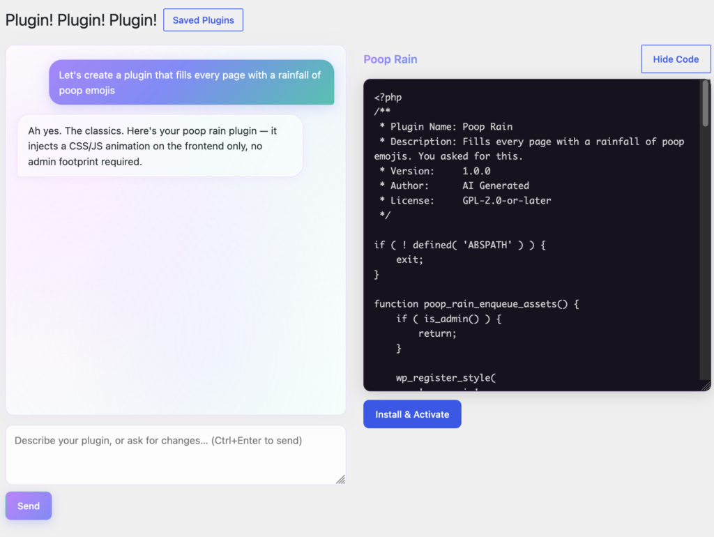 A WordPress plugin, that use the new AI connector in WordPress 7.0 to vibe code WordPress plugins for you!